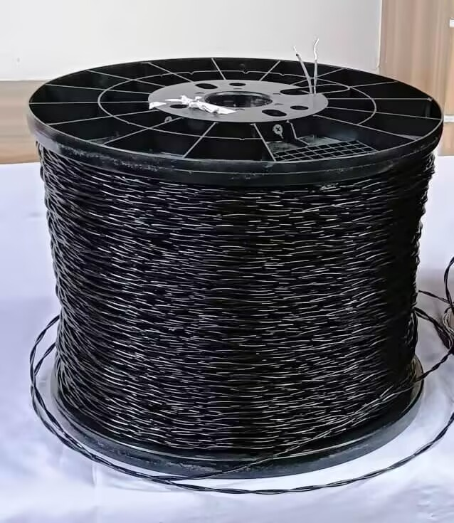 | デザイン | 1.導体: 中央に3本の撚り合わせた亜鉛メッキ鋼線と4本の錫メッキ銅線からなる7本の撚線 2.断熱材:ポリエチレン 色:黒または必須 3.シース:耐摩耗性ポリアミド(ナイロン)色:透明 4.形状: 2本の絶縁被覆コアを撚り合わせたもの 5.標準設置長さ: 500メートル |
